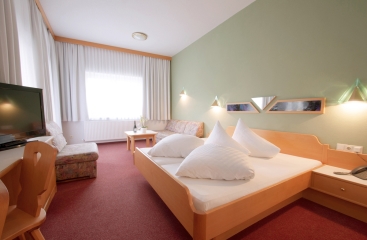 - Superior 3 22 m² - pokoj s manželskou postelí a rozkládacím gaučem pro 1 osobu či přistýlkou, sociální zařízení, balkon s výhledem do údolí