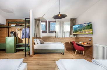 - Family Superior 4 prostorný pokoj s manželskou postelí a 2 samostatnými lůžky či rozkládacím gaučem pro 2 osoby, sociální zařízení se sprchou; pokoje po kompletní rekonstrukci