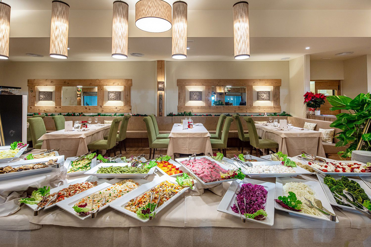 recepce / velká lobby s TV, restaurace vyhrazená pro hotelové hosty, bar/pizzeria se SKY-TV, společenská místnost, dětský koutek, miniklub (od 4 do 12 let; v italském a anglickém jazyce) vč. animačních programů a večerní MINI DISCO, animační programy, wi-fi připojení k internetu, úschovna lyží a lyžařských bot, výtah, vyhrazené parkoviště, garážová stání* (počet míst omezen), hotelový miniskibus