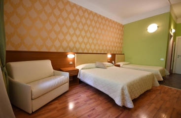 • Superior 2/3/4 pokoj s manželskou postelí a případně 1 či 2 samostatnými lůžky či rozkládacím gaučem pro 2 osoby, sociální zařízení, balkon; pokoj po celkové rekonstrukci