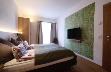 - bilo 2+2 Seeblick 49 m² - ložnice s manželskou postelí, obývací pokoj s kuchyňským koutem a rozkládacím gaučem pro 2 děti do nedovršených 20 let, sociální zařízení, 2x balkon