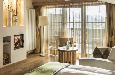 • Junior Suite Schlern 2/3/4 35 m² - pokoj s manželskou postelí a rozkládacím gaučem pro 2 osoby, sociální zařízení se sprchou či vanou, balkon